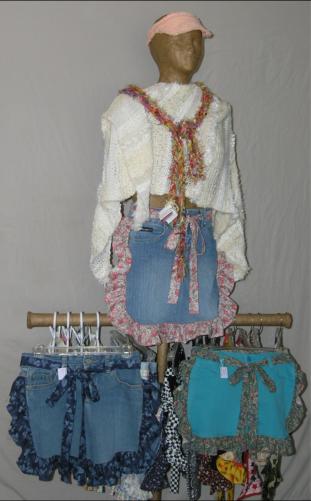 I upcycle denim jeans in to purses, apron, rug, dog collars, leashes and cat mice.