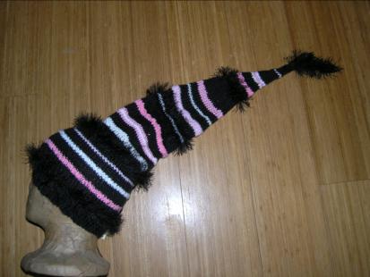 Knitting hats, scarves, wrist warmers, and dog sweaters.