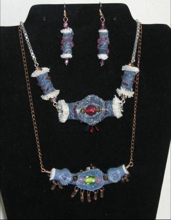 to geek inspired,upclycled denim, found objects and handpainted jewelry.